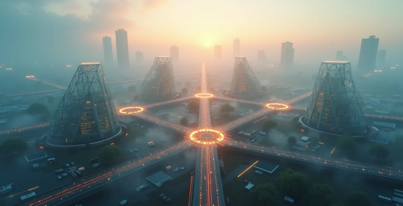 As this visualization of a collaborative R&D environment suggests, the true power lies in the dynamic interaction between diverse partners. This ecosystem provides the infrastructure, talent, and market access needed to scale disruptive technologies globally.